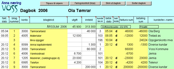 Dette programmet er basert på samme enkle og brukarvennlege modell som landbruksrekneskapen. Den største skilnaden er at kontoplanen er tilpassa andre næringar, og at alle element som er spesiellt for landbruk er fjerna. Du vil kunne utarbeide næringsoppgåver og andre nødvendige likningsskjema, inklusiv sjølvmelding. Oversikt over kundar og leverandørar, enkel analyse og skatteutrekning.